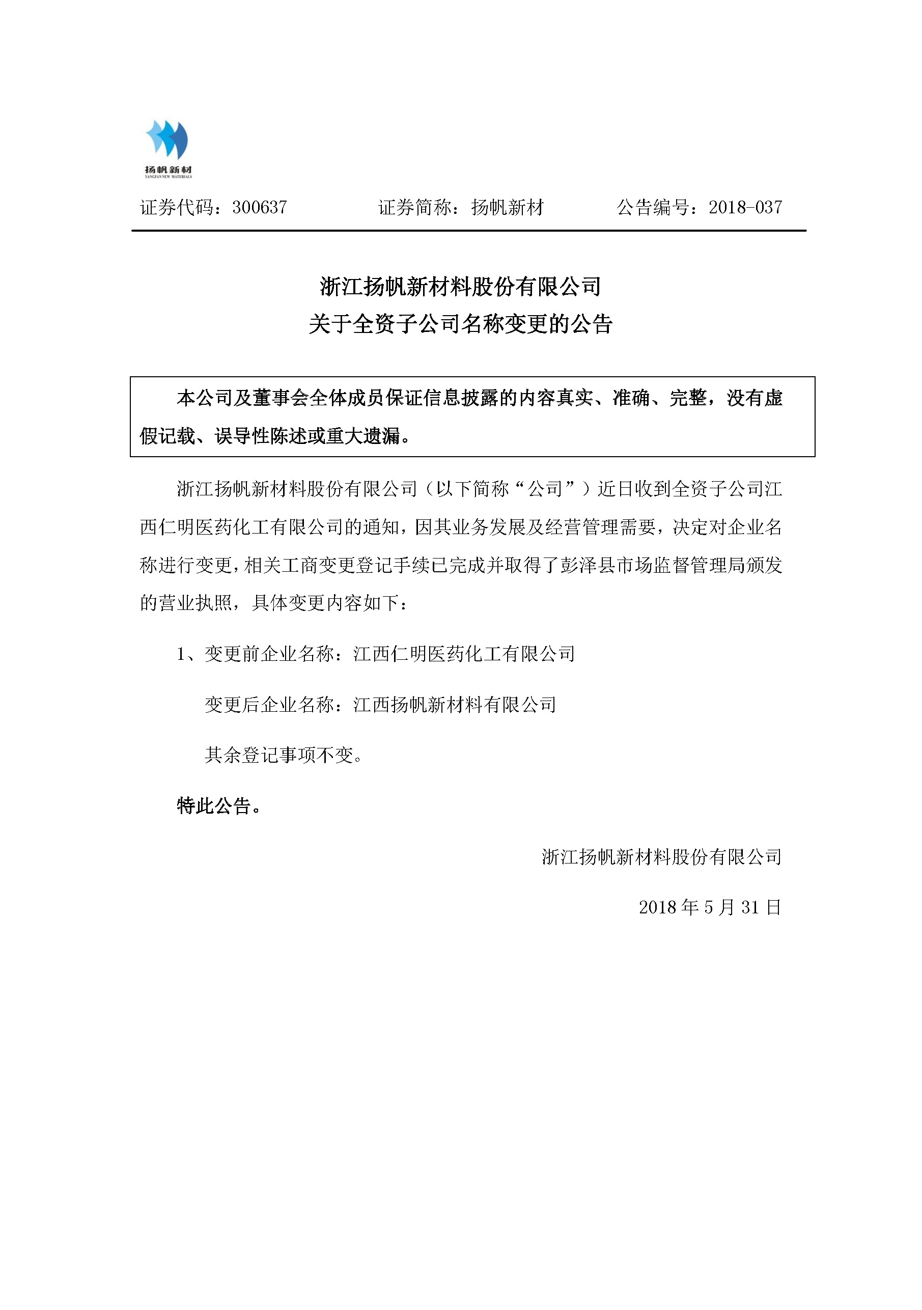 關(guān)于全資子公司名稱變更事宜