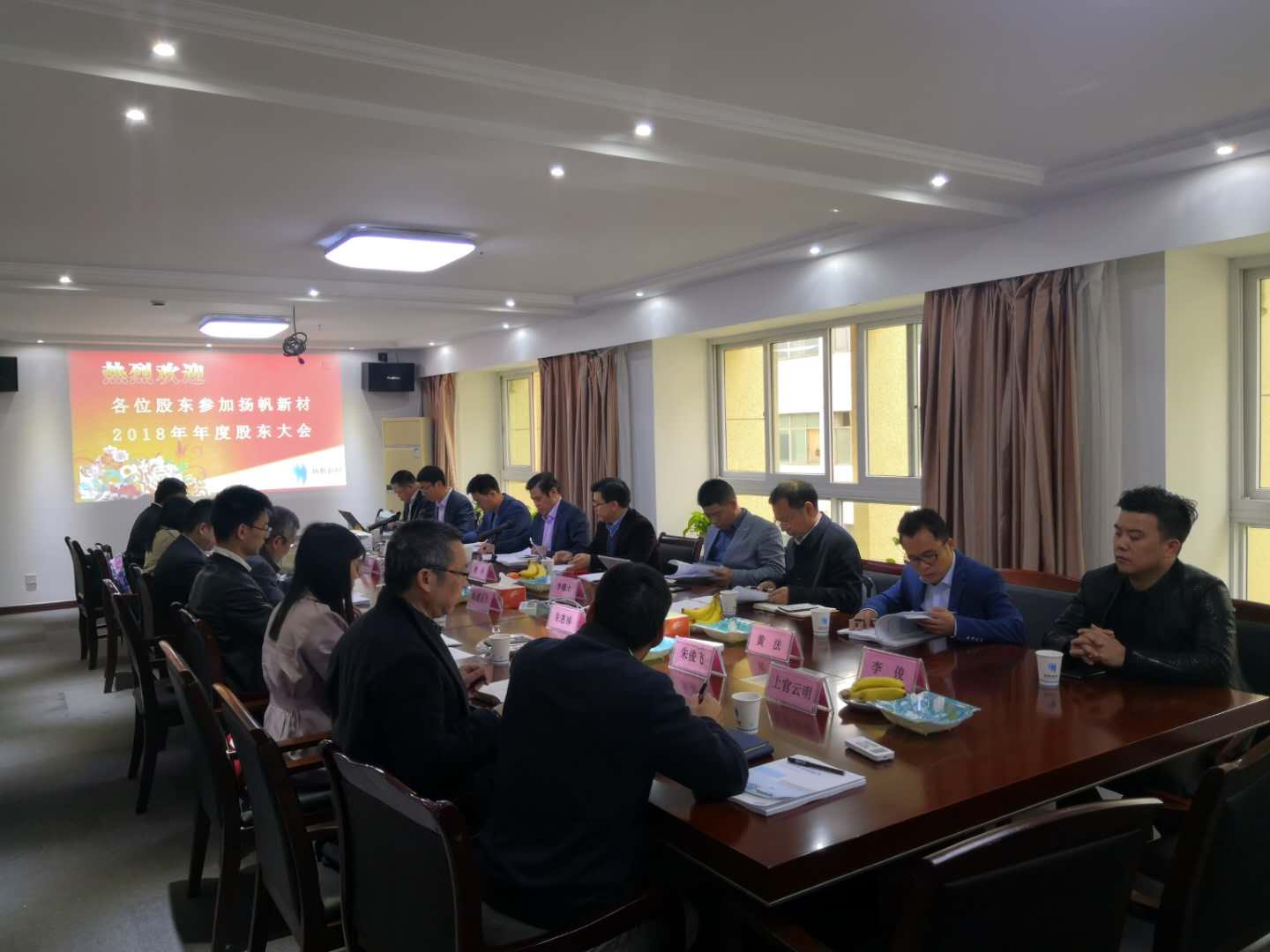 2019年4月11日,揚帆新材2018年年度股東大會在杭州揚帆大廈召開。公司股東馬紹爾SFC有限公司代表、揚帆新材董事長樊彬,浙江揚帆控股集團有限公司董事長樊培仁,寧波新帆投資管理有限公司授權代表、揚帆新材總裁李耀土,寧波益進凡投資管理合伙企業(有限合伙)授權代表丁曄飛,個人股東授權代表斯志堅等出席會議。公司董事、董事會秘書樊相東,獨立董事張福利、陶禮欽、黃法,監事朱惠娣、李俊,海通證券代表陳曉楠以及公司高級管理人員副總裁朱俊飛、技術總監吳紅輝、財務總監上官云明列席會議。會議由董事長樊彬主持,德恒上海律師事務所戴偉、吳曉霞兩位律師列席見證。