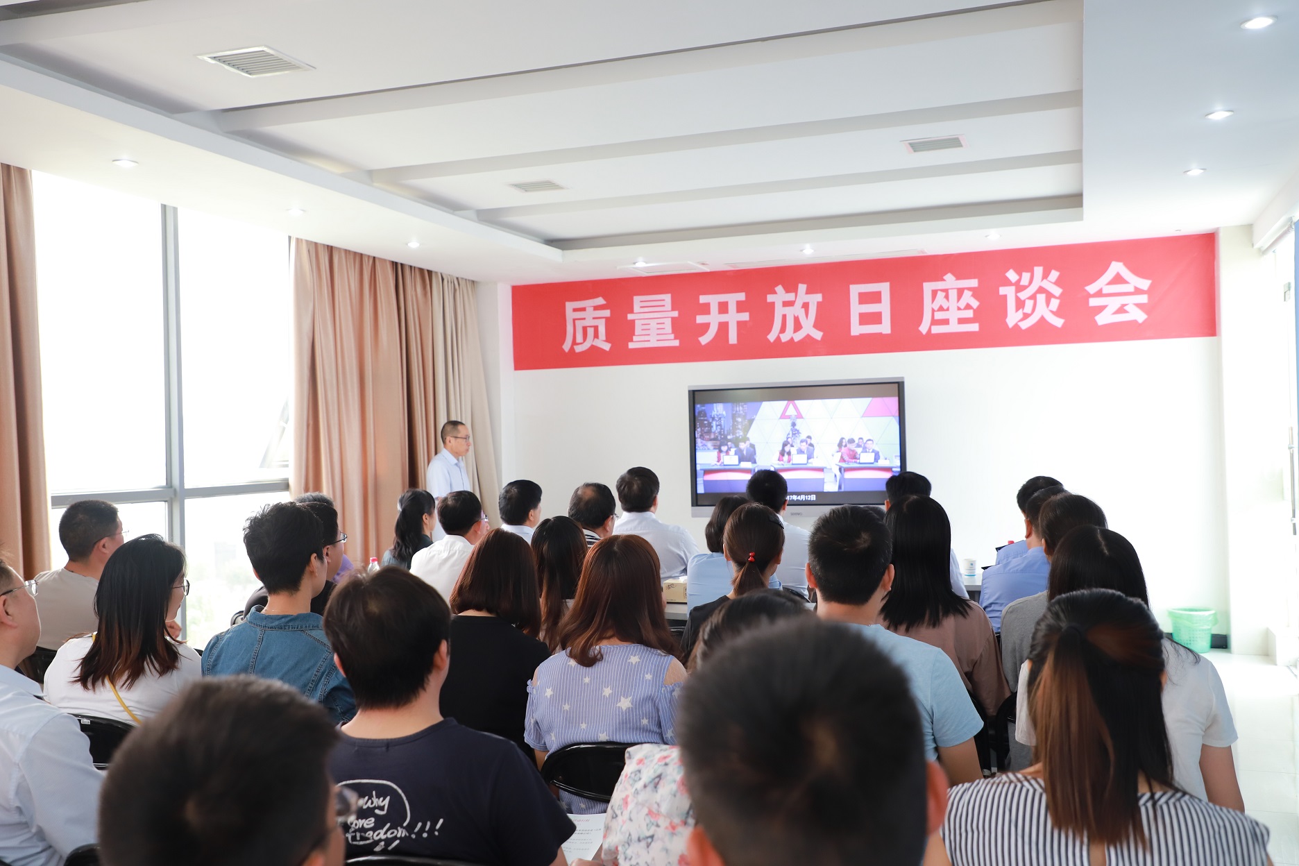 為進一步貫徹落實《質量發展綱要》,展示我公司在質量管理方面所做的工作,在彭澤縣質量強縣領導小組的指導下,9月25日,“2019年全國質量開放月質量開放日”活動在我公司如期舉行??h委常委、縣工業園區黨工委書記華樺,縣委常委、副縣長陳博,縣政協副主席錢葉友、李文瑞、熊慧蘭以及市場監督管理局、宣傳部、工信委、發改委、科技局、園區管委會、應急管理局、生態環境局、新聯會領導和園區企業代表一行五十多人出席了此次活動。