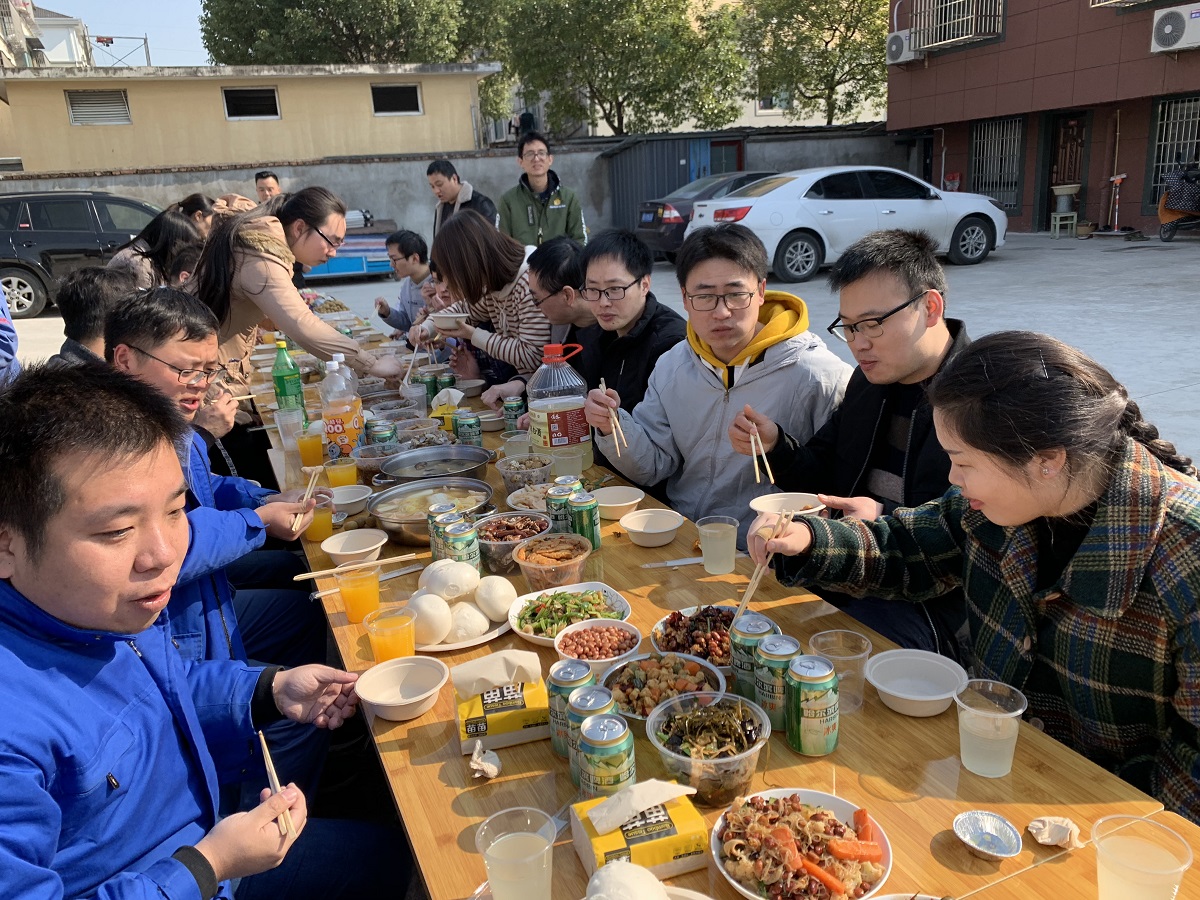 本次活動(dòng)以宿舍為單位報(bào)名參加,以宿舍院落為活動(dòng)地點(diǎn),每個(gè)宿舍至少準(zhǔn)備一個(gè)菜品,共同完成一頓豐盛大餐,旨在通過(guò)相互協(xié)作,增進(jìn)彼此之間的友誼。早晨7點(diǎn)剛過(guò),就陸續(xù)有同事出發(fā)去菜市場(chǎng)準(zhǔn)備食材,為中午的活動(dòng)做準(zhǔn)備。隨著午餐時(shí)間漸近,宿舍樓里熱鬧非凡,鍋鏟碰撞聲、油鍋嗞拉聲、嬉笑聲此起彼伏,大家擼起袖子,使出看家本領(lǐng),不一會(huì)各菜品便相繼亮相,川菜系的毛血旺、酸菜魚(yú)、辣子雞丁、醬爆螺螄,黔菜系的宮保雞丁,還有各色小炒:韭黃炒雞蛋、清炒西葫蘆、小炒木須肉等,囊括了五湖四海的味道。新老員工在院落里擺起長(zhǎng)桌,如家人般相互招呼入座,明媚的陽(yáng)光下,大家推杯換盞,品評(píng)佳肴,談笑風(fēng)生,其樂(lè)融融!