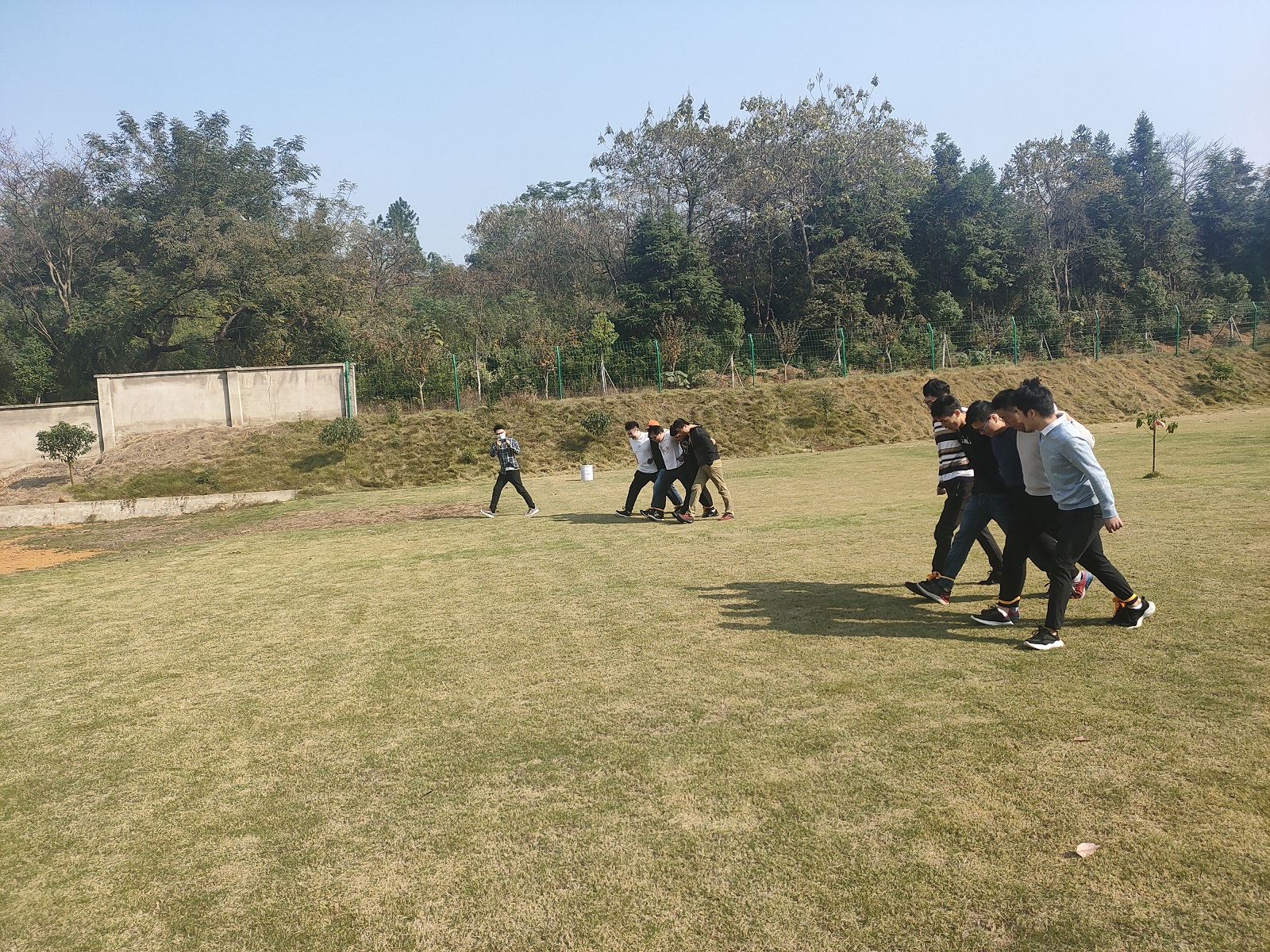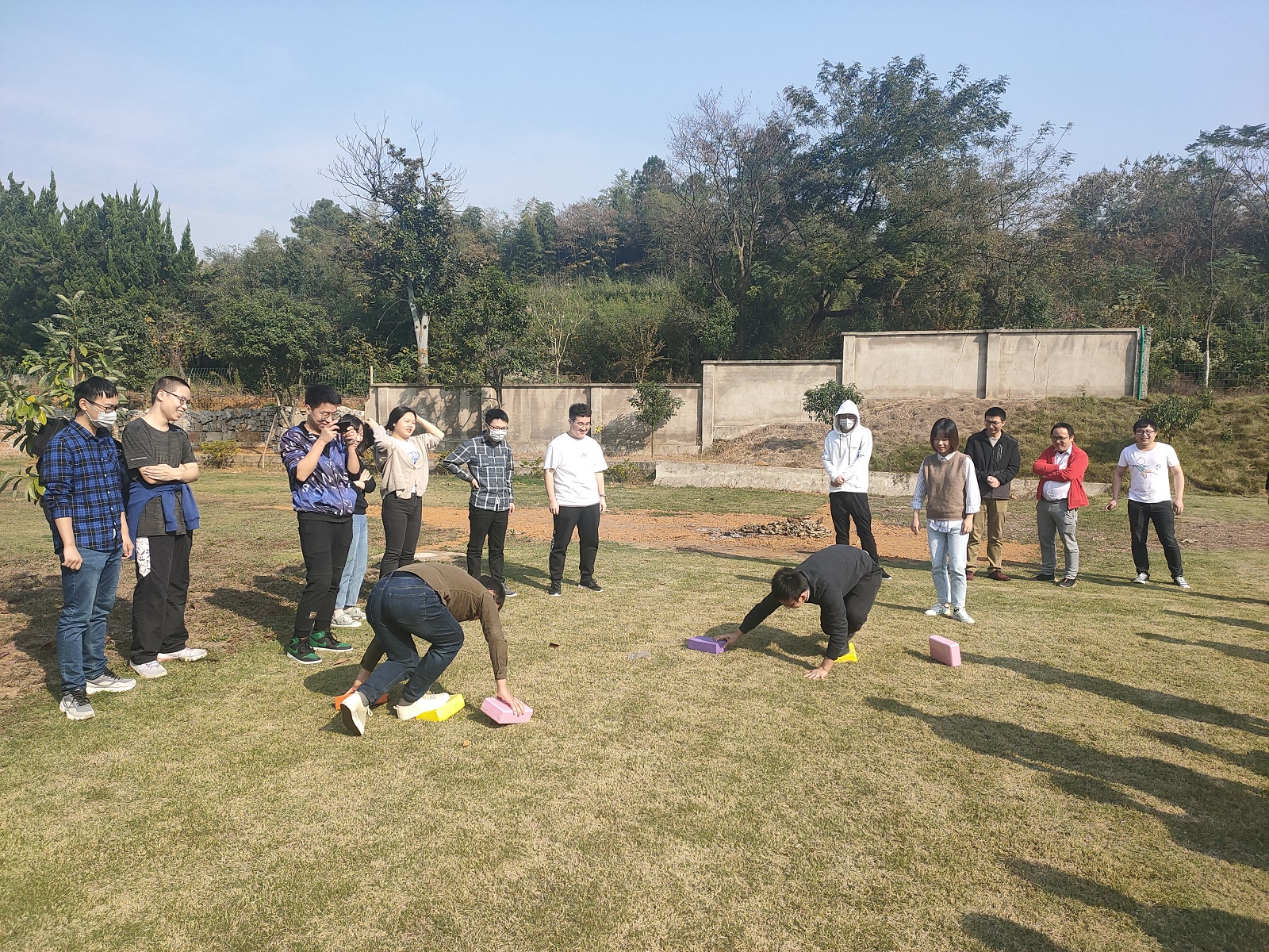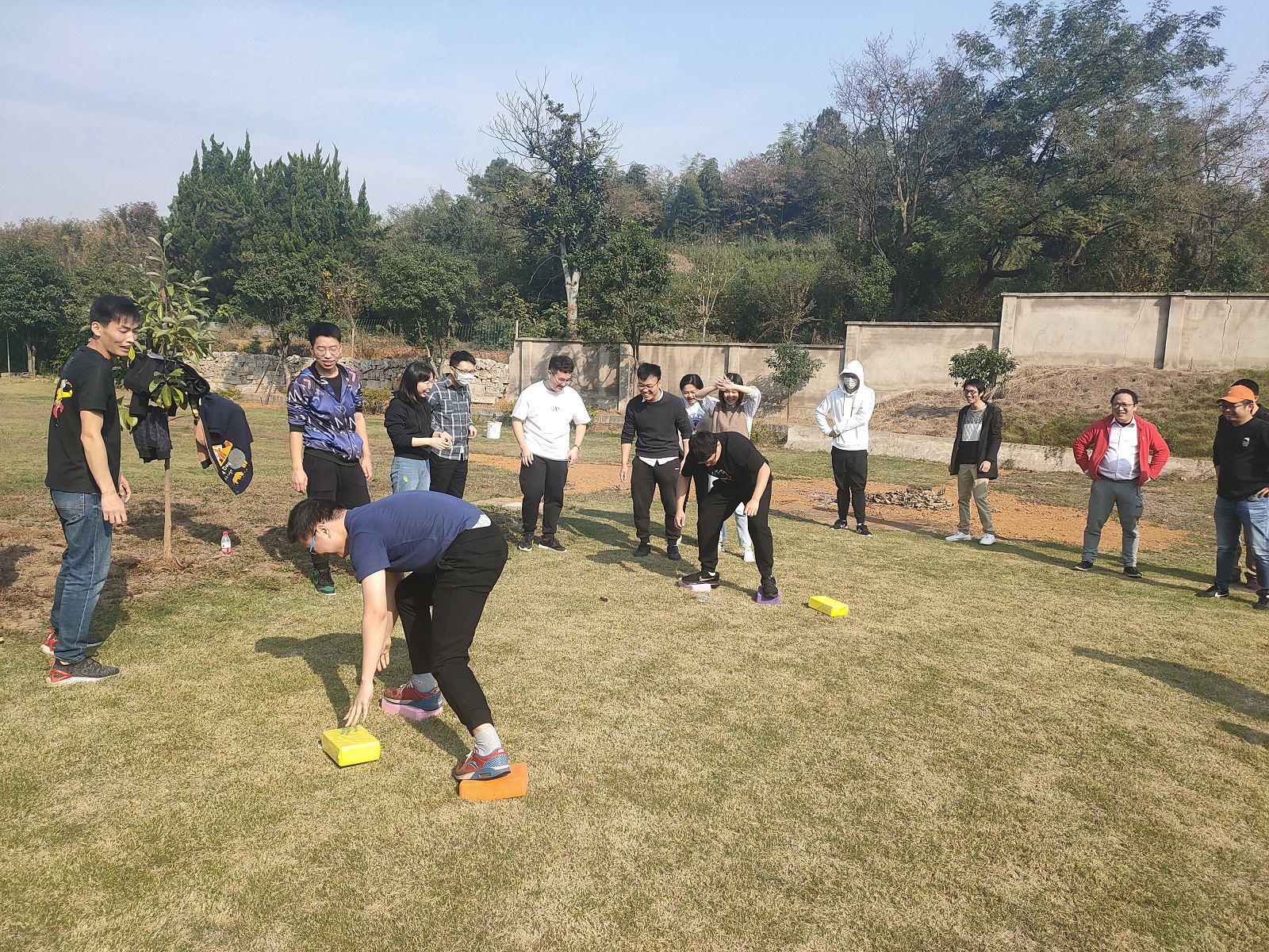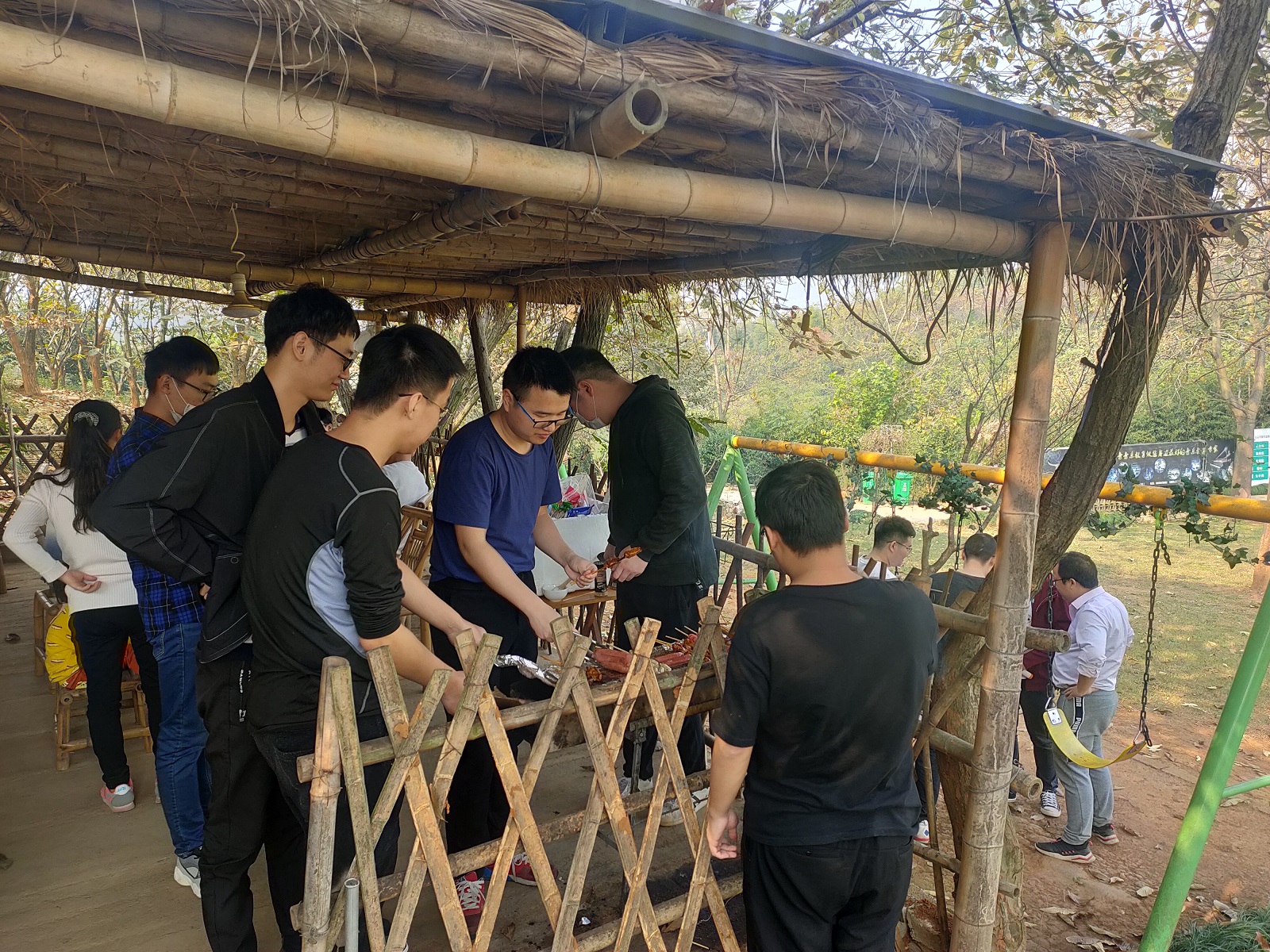 雖逢立冬時節(jié),卻天公作美,溫度宜人,早上9點,大家便早早來到活動場所,此次團建活動為大家準(zhǔn)備了“摸石頭過河”、“十人十一足”、特色燒烤等系列寓教于樂的節(jié)目。游戲環(huán)節(jié),團隊成員自發(fā)分組成隊,摩拳擦掌,力爭在游戲中奪得勝利,雖歡聲笑語,卻也在一次次失敗中更懂得了團隊的力量和來自伙伴之間的默契和信任。在燒烤環(huán)節(jié),不時有人配合著背景音樂放聲歌唱,燒烤的煙火氣搭配逗樂的歌聲,意外地碰撞出火花,不時引來一陣陣喝彩。