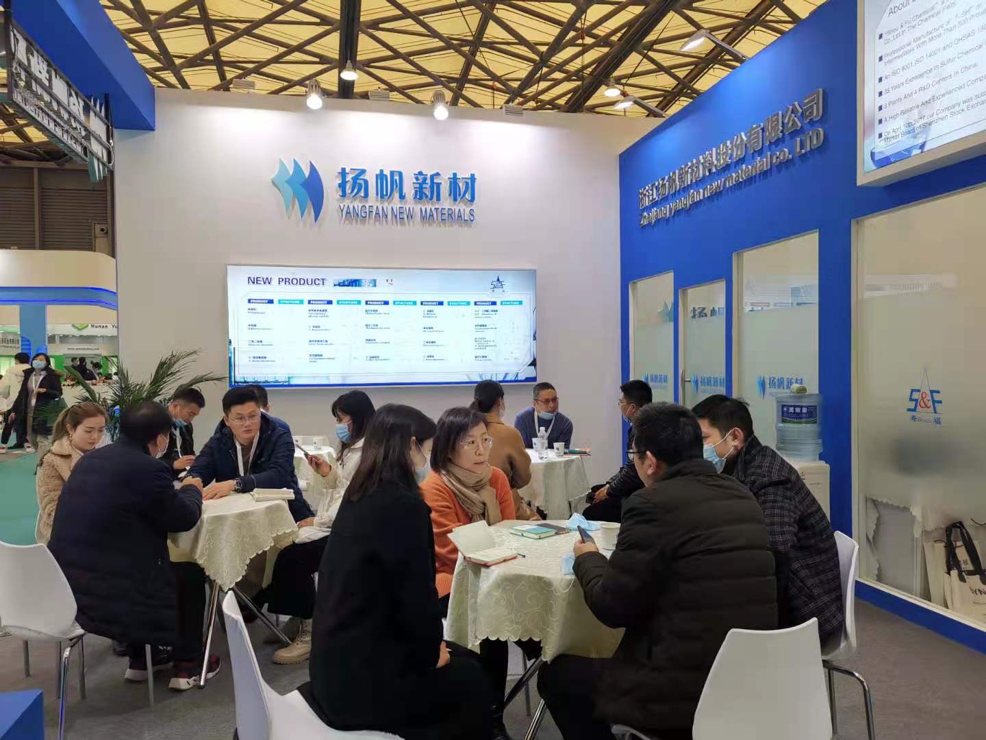 展會期間,揚帆新材展廳的客戶絡繹不絕,客戶朋友相繼蒞臨拜訪,公司參展團隊熱情接待,并向客戶介紹公司近期的發展規劃及當前雙方所合作產品項目情況。良好地口碑和產品優勢也吸引了大量新客戶的駐足參觀,通過溝通交流,我們不僅了解了客戶需求,也更好地推廣了公司品牌,并帶回了許多終端用戶與經銷商朋友的寶貴意見。