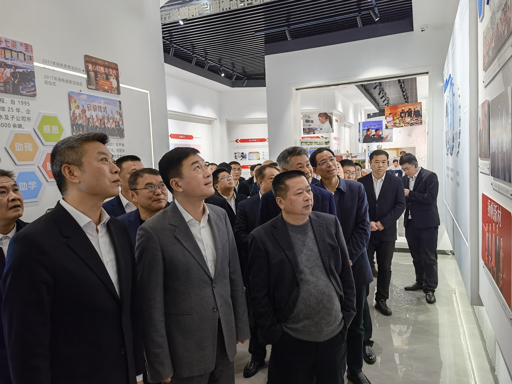 首先,張書記一行參觀了企業發展(產品)展示廳、黨建展廳。樊彬董事長向各位領導就公司發展歷程、企業文化、產品工藝流程、設備裝置、市場前景等方面進行了介紹,并就公司目前的運營情況、主要產品、發展目標、競爭優勢、人才戰略等方面做了重點匯報。