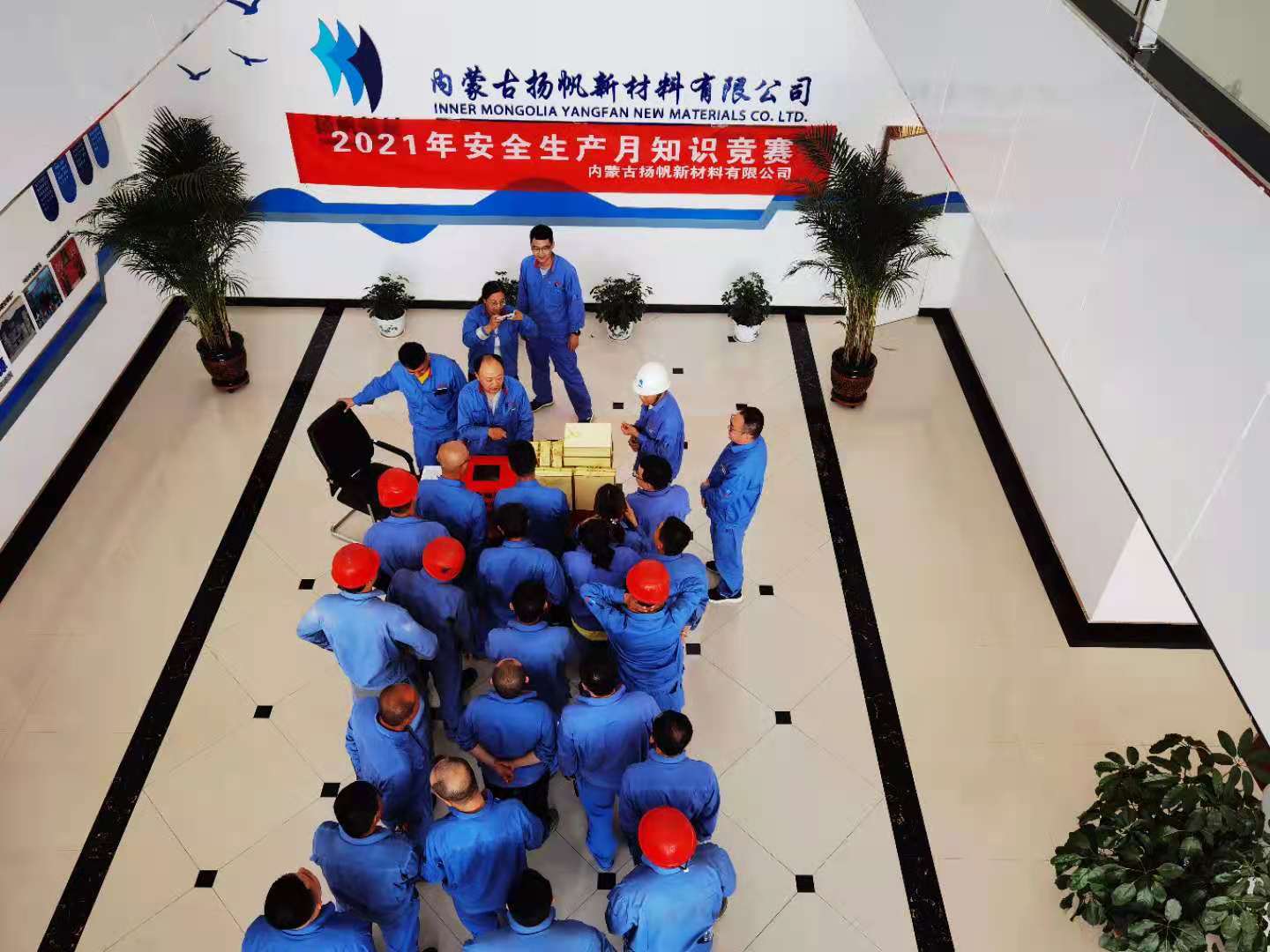 為迎接全國(guó)第20個(gè)安全生產(chǎn)月的到來,同時(shí)為慶祝建黨100周年?duì)I造良好的企業(yè)安全環(huán)境,內(nèi)蒙古揚(yáng)帆新材料有限公司在火熱的6月進(jìn)行了2021年“安全生產(chǎn)月”啟動(dòng)儀式動(dòng)員大會(huì)。