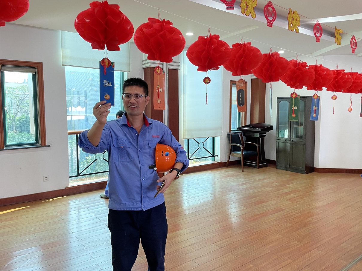 活動現(xiàn)場張燈結彩,熱鬧非凡。辦公大樓二樓培訓室內掛了100多個燈籠,每盞燈籠下都懸吊著謎面紙條?;顒娱_始,職工們興趣盎然、踴躍參與,有的結伴同行,你一言我一語,集思廣益;有的凝神思索、獨自琢磨。猜中者滿心歡喜,猜錯者繼續(xù)努力,大家都樂在其中,爭做本場活動的“最強大腦”,體驗著猜燈謎帶來的樂趣和成就感。活動中,職工在獲得豐富小禮品的同時還進行了幸運大抽獎,最終五份月餅禮盒大獎被機修、采購、環(huán)安部等同事成功抽走。