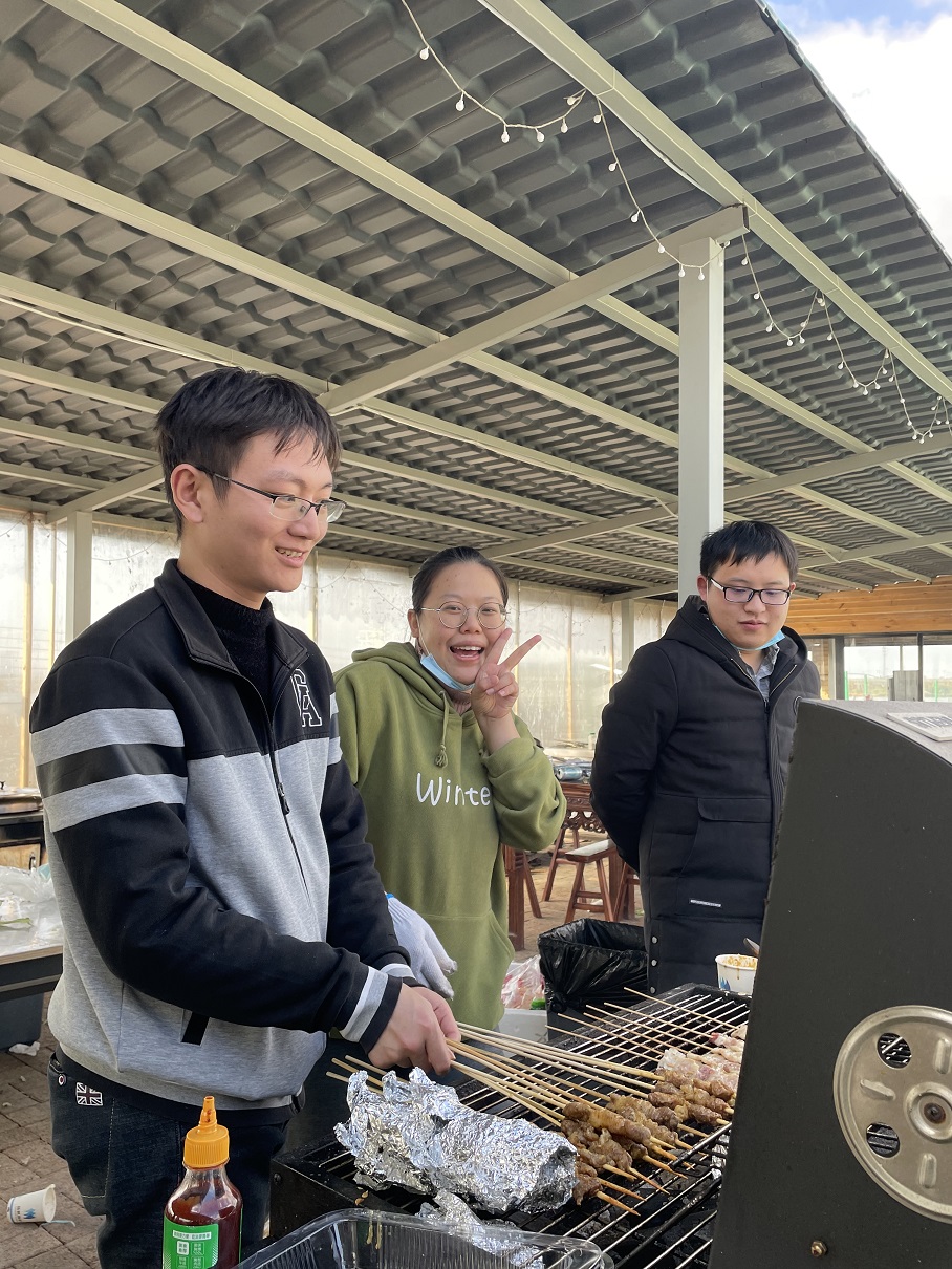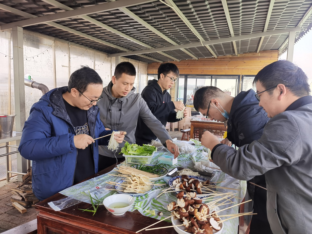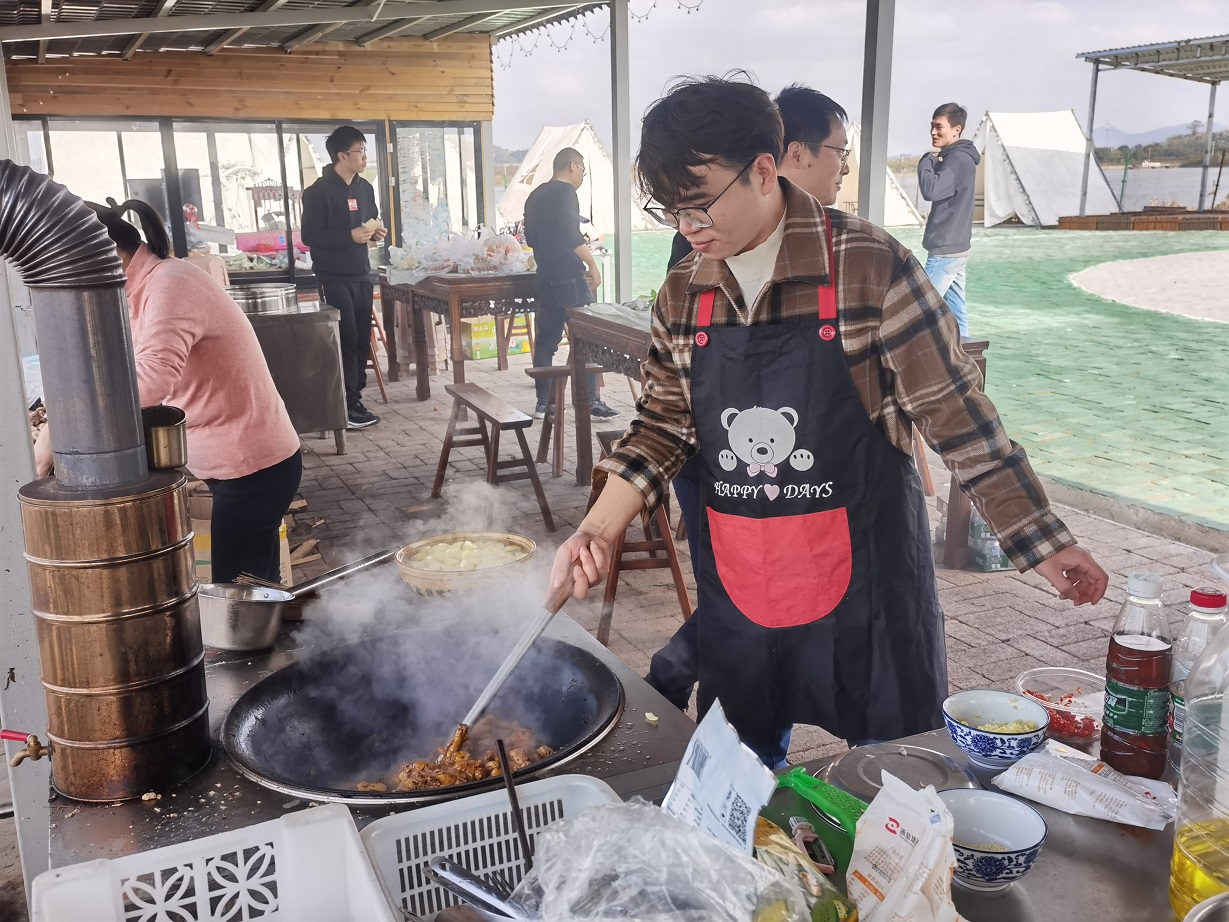 游戲結(jié)束后,我們進行了“燒烤”和“土灶燒菜”活動。通過剛才游戲環(huán)節(jié)的影響,每個人都變得更加積極,分工也更加明確,生火、洗菜、切菜、穿串、烤肉、燒菜,有條不紊,忙而不亂。自娛自樂中,還不時有人為大家高歌幾曲,氣氛十分融洽。