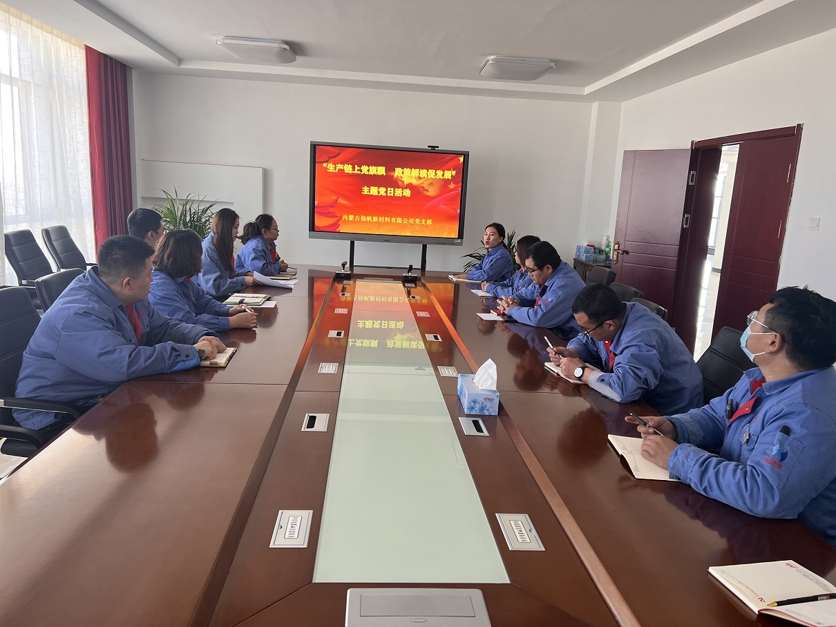為進(jìn)一步發(fā)揮黨建引領(lǐng)作用,促進(jìn)“黨建+生產(chǎn)”深度融合,提高企業(yè)生產(chǎn)效率,提升企業(yè)創(chuàng)新能力,強(qiáng)化黨員使命擔(dān)當(dāng)、凝聚員工奮進(jìn)力量,10月19日,內(nèi)蒙古揚(yáng)帆新材料有限公司黨支部以“主題黨日+”為契機(jī),開展“生產(chǎn)鏈上黨旗飄 政策解讀促發(fā)展”主題黨日活動,共同慶祝黨的二十大勝利召開。