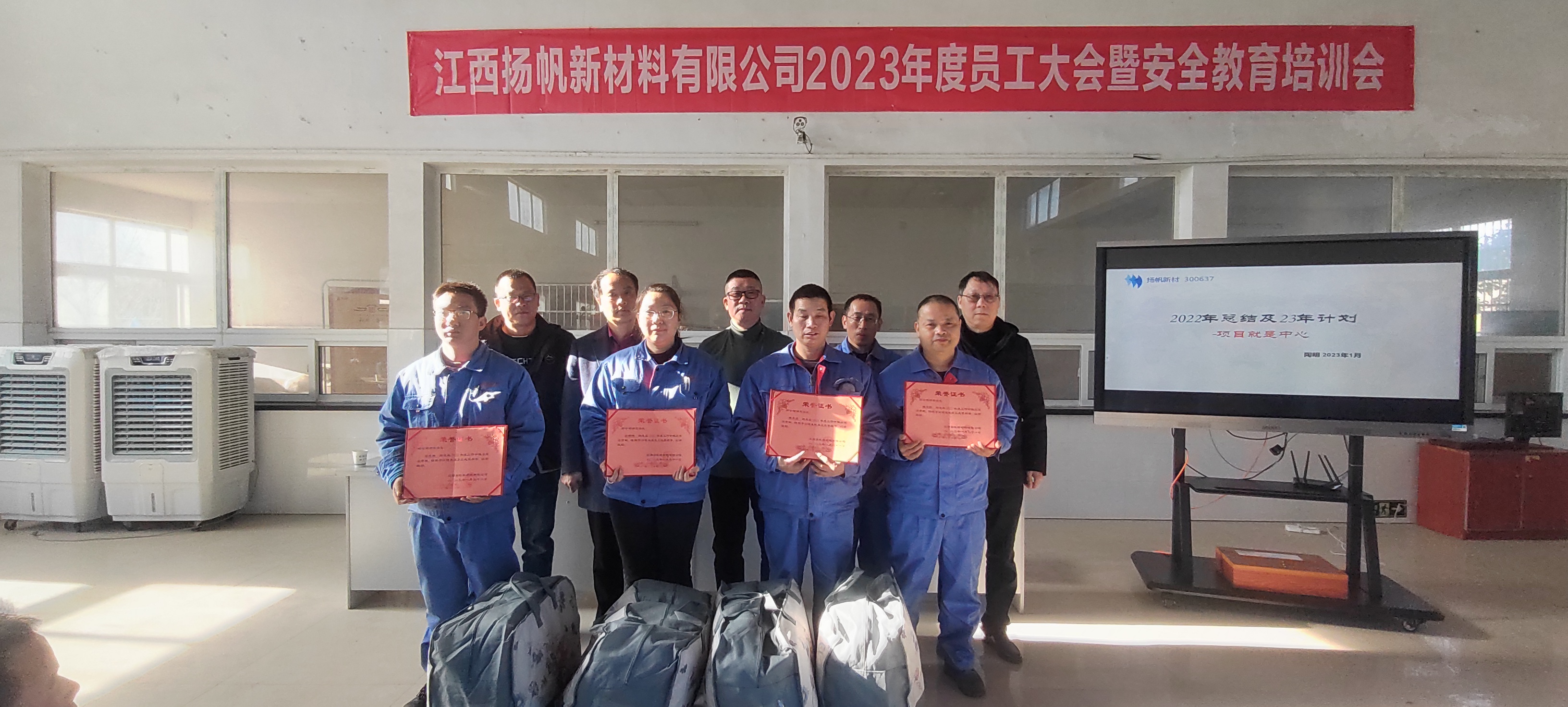 1月31日,揚(yáng)帆新材上虞生產(chǎn)基地召開2023年度職工大會(huì)。