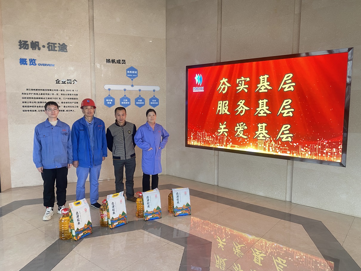 為推進學習貫徹習近平新時代中國特色社會主義思想主題教育走深走實,弘揚中華傳統美德,關愛困難群體,履行社會責任,彰顯企業擔當, 2023 1117日下午,揚帆新材支部委員會開展了走訪慰問老員工老黨員活動,為12戶職工送去了米、油等生活必需品。