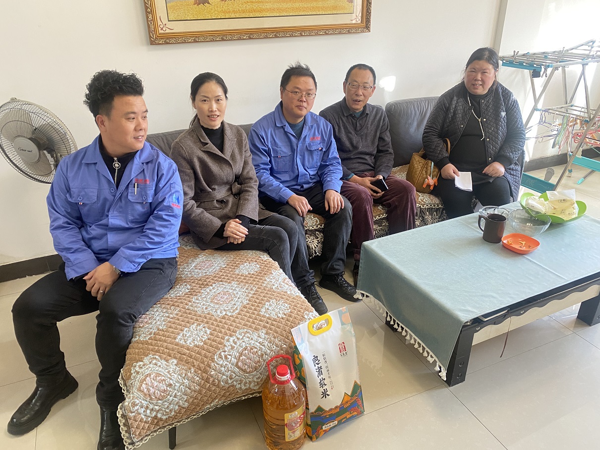 在員工謝東的家中,李琴等代表公司首先詢問了他們的生活和健康狀況,并進行了親切的交談,感謝他們對揚帆新材多年來做出的重要貢獻。